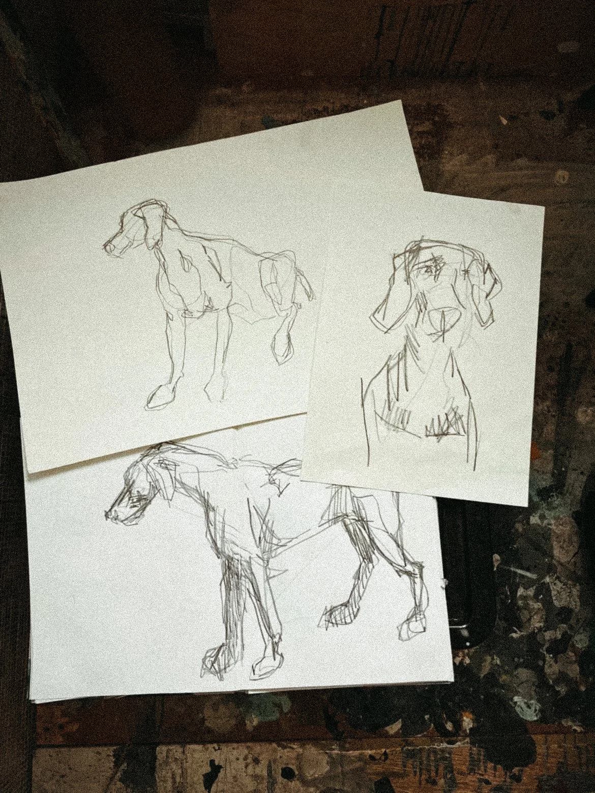 Born and raised in South West England, Amy is a contemporary artist who now works from her Dorset studio. She grew up surrounded by dogs, and spends her days with her four dogs while she draws your dogs.